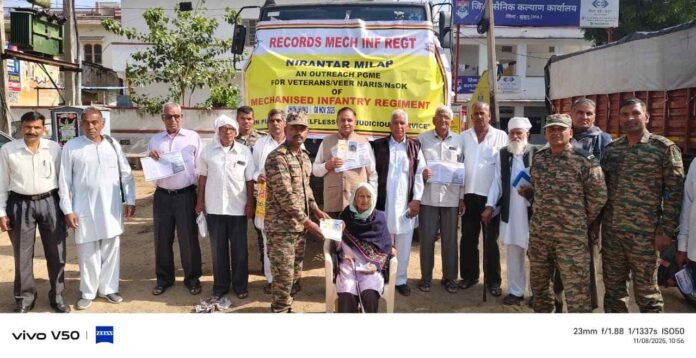 झुंझुनूं, 8 नवंबर। मैकेनाइज्ड इन्फैंट्री रेजीमेंट के सेवारत, भूतपूर्व सैनिकों, वीर नारियों तथा दिवंगत सैनिकों के आश्रितों की समस्याओं के समाधान हेतु रेजीमेंटल रिकॉर्ड द्वारा संचालित ‘निरंतर मिलाप कार्यक्रम’ के अंतर्गत शनिवार को जिला सैनिक कल्याण कार्यालय, झुंझुनू में विशेष शिविर आयोजित किया गया।