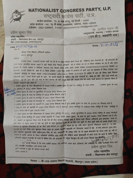 सीतापुर जनपद के विकास खण्ड रेऊसा की विभिन्न ग्राम पंचायतों में वित्तीय अनियमितताओं और भ्रष्टाचार के गंभीर आरोप सामने आए हैं। राष्ट्रवादी कांग्रेस पार्टी (एनसीपी) की ओर से इस संबंध में प्रशासन का ध्यान आकर्षित करते हुए विस्तृत शिकायत प्रस्तुत की गई है।