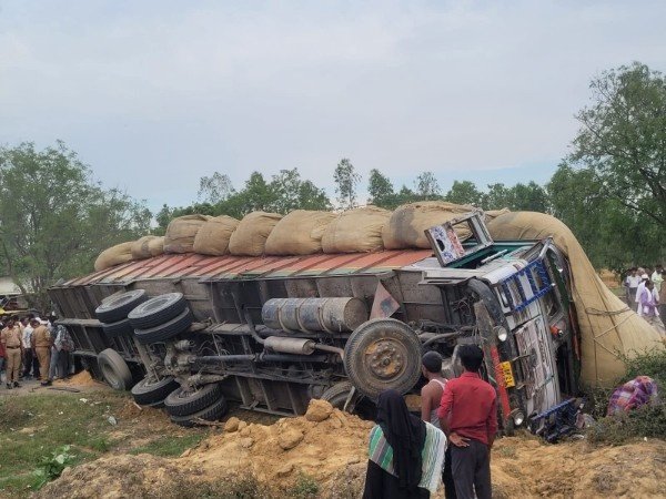 प्राप्त जानकारी के अनुसार, भूसी से भरा एक ओवरलोड ट्रक अचानक अनियंत्रित होकर सामने से आ रहे पिकअप वाहन पर पलट गया। ट्रक में अत्यधिक ऊंचाई तक माल लदा हुआ था, जिससे वाहन का संतुलन बिगड़ गया और यह हादसा हो गया। टक्कर इतनी भीषण थी कि पिकअप वाहन पूरी तरह क्षतिग्रस्त हो गया और उसमें सवार तीन लोगों की मौके पर ही मौत हो गई।
