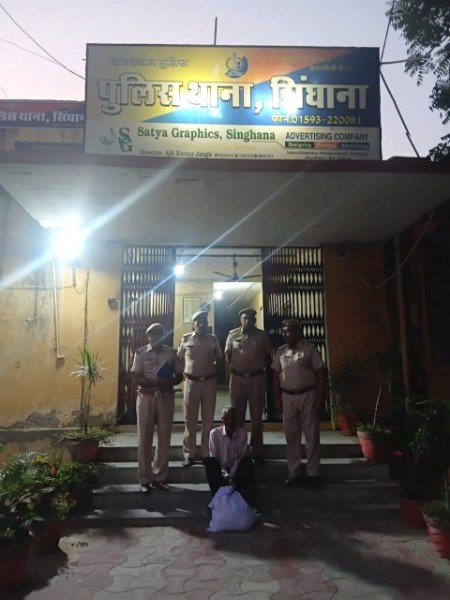 दिनांक 26.10.2025 को थानाधिकारी श्री सीताराम उ.नि. मय जाप्ता के लोकल एवं स्पेशल एक्ट की कार्यवाही तथा नाकाबन्दी हेतु थाना से रवाना होकर बुहाना मोड नजदीक नारनौल- सिंघाना रोड पर पहुंचकर आने – जाने वाले वाहनों व व्यक्तियों की चैकिंग की जा रही थी। दौराने चैकिंग नारनौल की तरफ से एक शख्स अपनी पीठ पर प्लास्टिक कट्टा लटकाये पैदल – पैदल आता हुआ दिखाई दिया। जो नाकाबन्दी कर रहे पुलिस जाब्ता को देखकर अपने कब्जे वाले प्लास्टिक के कट्टे को छुपाकर पुलिस से बचता वापस मुड़कर तेजी से पैदल – पैदल नारनौल की तरफ जाने लगा। जिस पर शक होने पर रोका जाकर पुछताछ की गई तो अपने कब्जे वाली प्लास्टिक के कटटे में अवैध मादक पदार्थ गांजा होना बताया तथा अपना नाम कुम्माराम पुत्र श्री मालीराम जाति ब्राहम्ण उम्र 68 साल निवासी वार्ड नंबर 21, शिव कॉलोनी कस्बा सिंघाना का होना बताया। उक्त शक्स को अपने पास अवैध मादक पदार्थ गांजा रखने बाबत लाईसेस/अनुज्ञा पत्र के बारे में पूछा तो अपने पास गांजा रखने के बारे में किसी प्रकार का लाईसेंस/अनुज्ञा पत्र नही होना बताया, जिस पर शख्स कुम्माराम के कब्जे में प्लास्टिक की कटटे में मिले कुल 07.288 किलोग्राम (प्लास्टिक कट्टे सहित वजन) अवैध मादक पदार्थ गांजा को जप्त किया गया तथा शक्स कुम्माराम को गिरफ्तार किया गया। एनडीपीएस एक्ट में प्रकरण दर्ज कर अनुसंधान आरंभ किया गया। आरोपी कुम्माराम से गहनता से अनुसंधान जारी है।