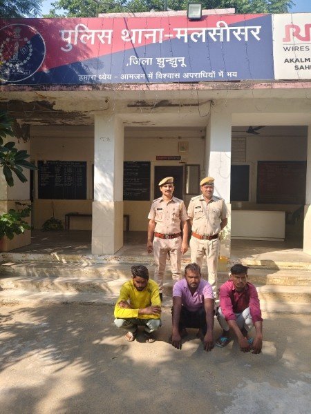 24 अक्टूबर 2025, शुक्रवार | बृजेश ज्‍योति उपाध्‍याय आई.पी.एस पुलिस अधीक्षक झुन्‍झुनू के निर्देशानुसार व श्री देवेन्‍द्र सिंह राजावत आरपीएस अतिरिक्‍त पुलिस अधीक्षक मुख्‍यालय जिला झुन्‍झुनू के मार्गदर्शन मे पुलिस उप अधीक्षक श्री हरिसिंह धायल वृताधिकारी वृत झुन्‍झुनू ग्रामीण के सुपरविजन व श्री विष्‍णुदत उनि थानाधिकारी पुलिस थाना मलसीसर के नेतृत्व मे गठित टीम द्वारा अतिरिक्‍त सिविल न्‍यायाधीश एवं न्‍यायिक मजिस्‍ट्रेट झुन्‍झुनू के मुकदमा न 1556/2018 मे जारी गिरफ्तारी वारण्‍ट मे वारण्‍टी तौफिक व रुस्‍तम तथा प्रकरण सख्‍या 389/2022 मे जारी गिरफ्तारी वारण्‍ट मे वारण्‍टी राजकुमार को गिरफ्तार किया गया।