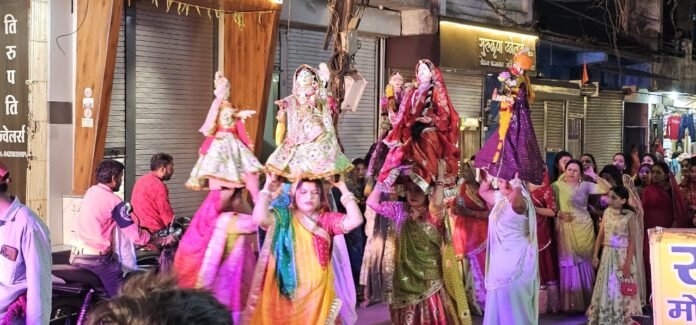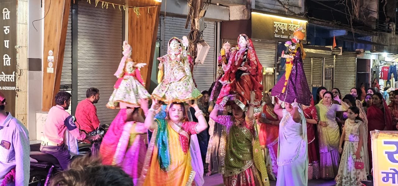 श्री देववंशीय मालवीय लोहार समाज मंदिर से शाम 6 बजे बैंड-बाजों की गूंज और ढोल की थाप के साथ माँ गणगौर का भव्य जुलूस निकाला गया। इस दौरान पूरा मार्ग ‘ईश्वर-गौरी’ के जयकारों और पारम्परिक लोक गीतों से गुंजायमान हो उठा