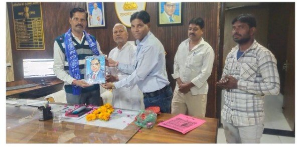 शाहपुरा-अम्बेडकर विचार मंच संस्थान की तरफ से शाहपुरा अतिरिक्त कलेक्टर प्रकाश चन्द्र रेगर का कलेक्टर ऑफिस पर माला,दुपट्टा व साफा पहनाकर कर स्वागत किया गया और अम्बेडकर विचार मंच की तरफ से डॉ. भीमराव अंबेडकर की तस्वीर भेट की गई।अम्बेडकर विचार मंच के जिलाध्यक्ष ने सभी साथियों के साथ मिलकर बहुत ही सादगी पूर्ण तरीके से स्वागत किया।जिसमें अम्बेडकर विचार मंच के जिलाध्यक्ष सुरेश चंद्र घुसर, भाजपा के वरिष्ठ पार्षद देबी लाल रेगर,शंकर खटीक, समाज सेवक राजेन्द्र खटीक व गोदु बंजारा सहित आदि लोगो ने अतिरिक्त कलेक्टर प्रकाश चन्द्र रेगर का स्वागत किया।