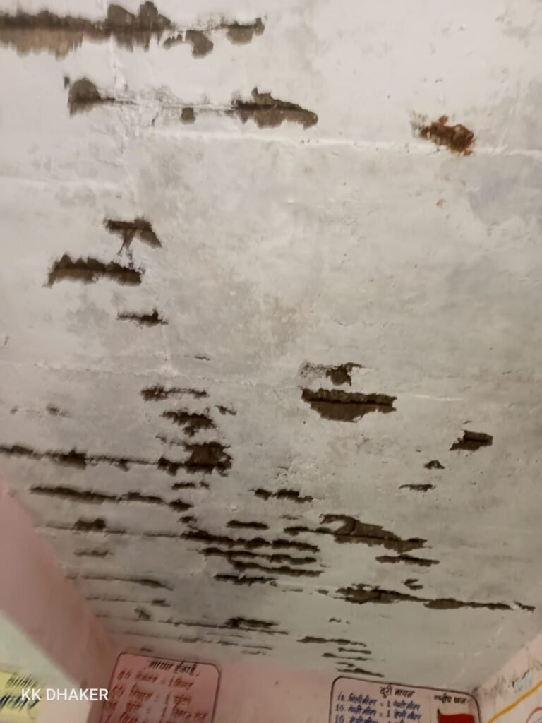भवन की हालत: दीवारों में दरारें, छत टपकना, कमजोर संरचना जो किसी दुर्घटना को न्योता दे सकती है।
